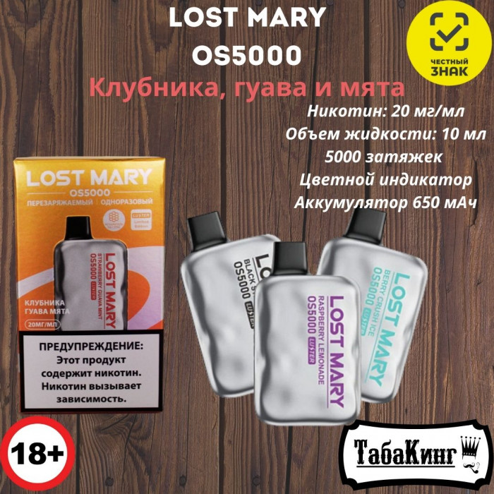Lost Mary OS5000 Luster Клубника-Гуава-Мята