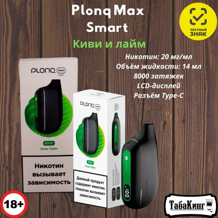 Одноразовая электронная сигарета Plonq MAX Smart Киви, лайм на 8000 затяжек. Устройство выполнено в монолитном легком корпусе каплевидной формы. Акцентный цветовой компонент отображает вкус. Плавные очертания и глянцевая поверхность обеспечивают приятные тактильные ощущения. Внешний вид Плонг Макс Смарт разработан на основе концепций стримлайн-дизайна и аэродинамических технологий.