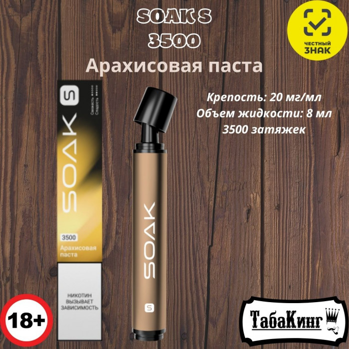 Одноразовая электронная сигарета SOAK S Арахисовая паста на 3500 затяжек.