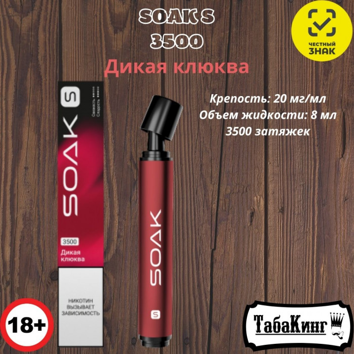 Одноразовая электронная сигарета SOAK S Дикая клюква на 3500 затяжек.