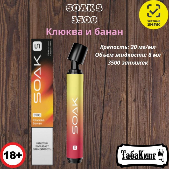 Одноразовая электронная сигарета SOAK S Клюква-Банан на 3500 затяжек.