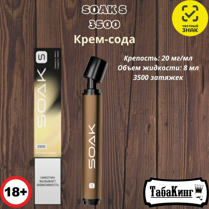 Одноразовая электронная сигарета SOAK S Крем-сода на 3500 затяжек.