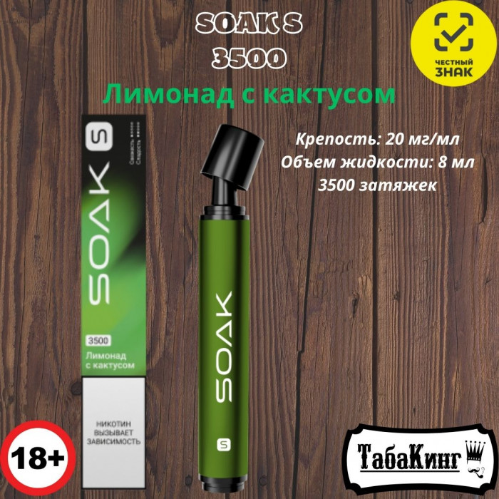 Одноразовая электронная сигарета SOAK S Лимонад с кактусом на 3500 затяжек.