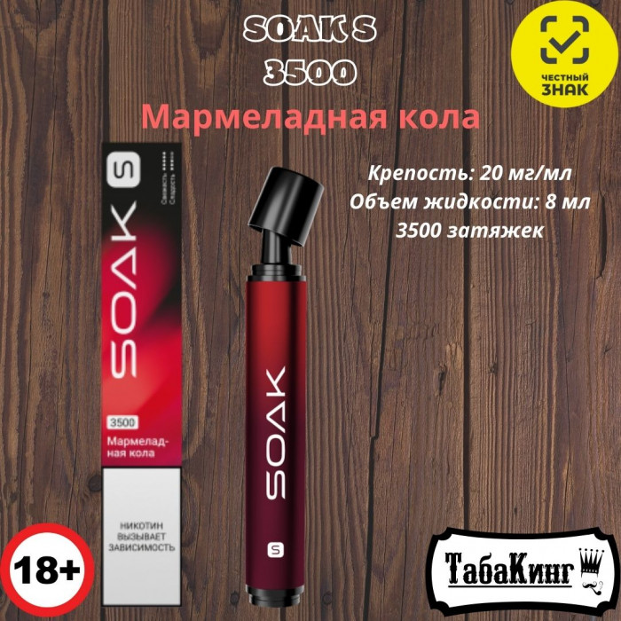 Одноразовая электронная сигарета SOAK S Мармеладная кола на 3500 затяжек.