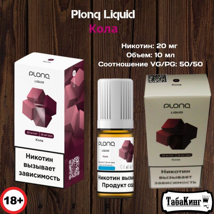 Жидкость для заправки электронных сигарет Plonq Liquid 10 мл со вкусом Кола. Поставляется во флаконе с удобной крышкой, которая оснащена механизмом блокировки от случайного открывания. Содержит 20 мг никотина.