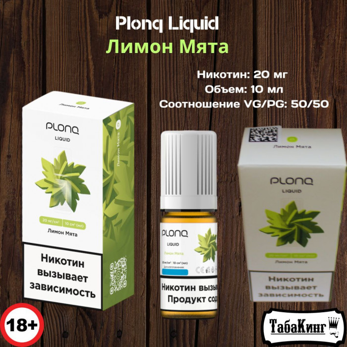 Жидкость для заправки электронных сигарет Plonq Liquid 10 мл со вкусом Лимон-Мята. В основе содержится 20 мг никотина. Крышка оснащена блокировочным механизмом, что предотвращает случайное открытие. Флакон изготовлен из материалов, пригодных для переработки.